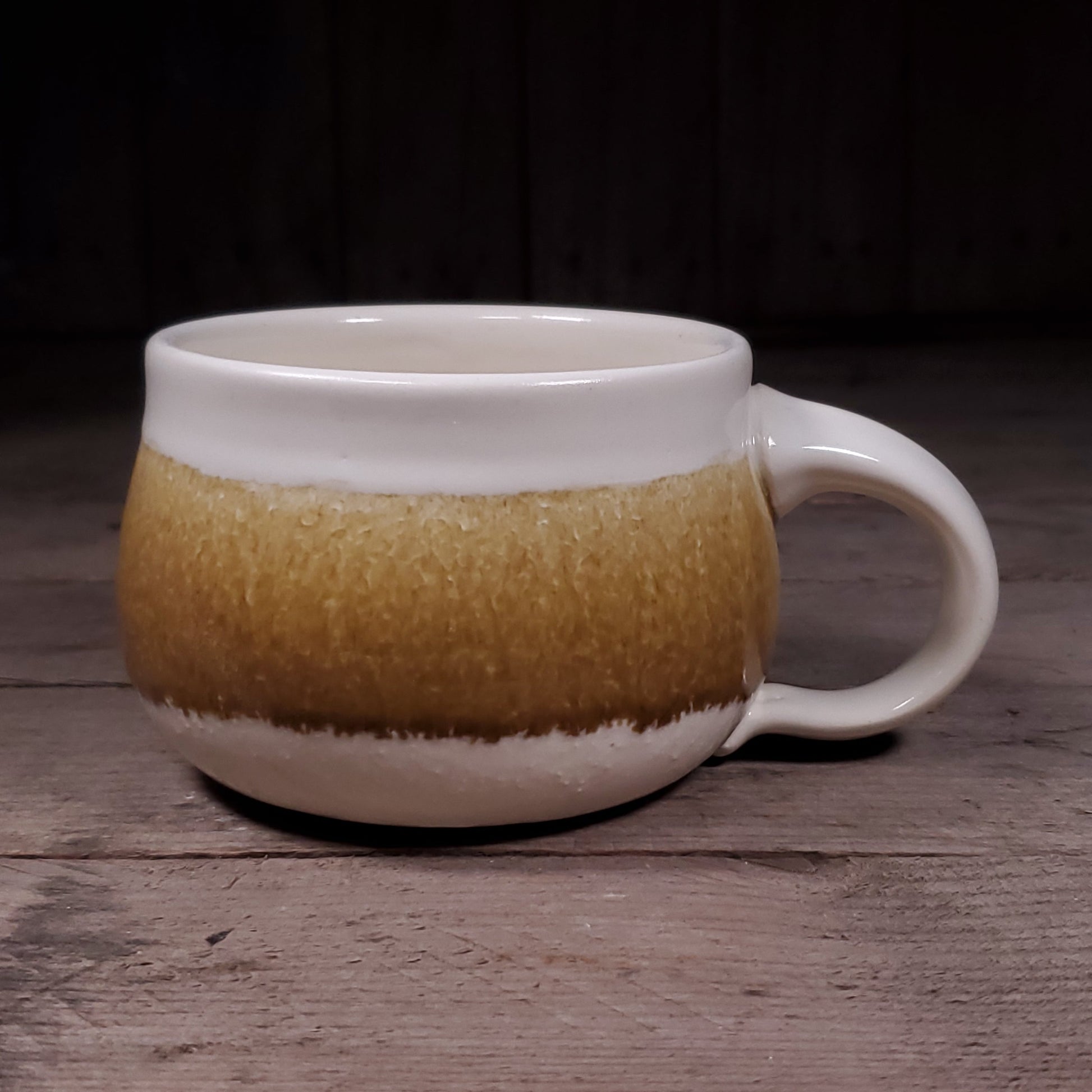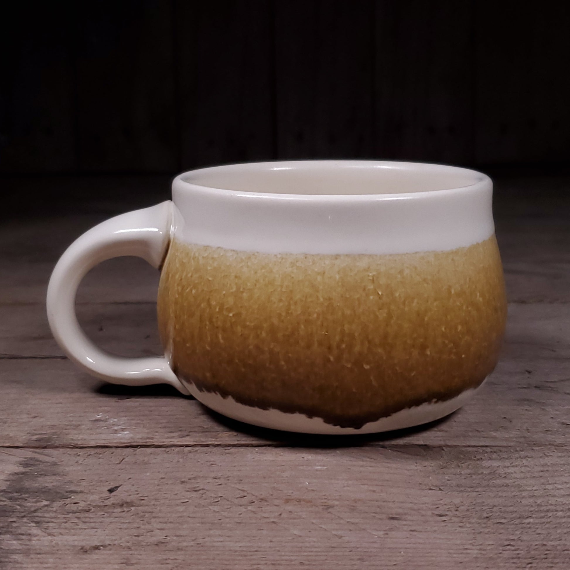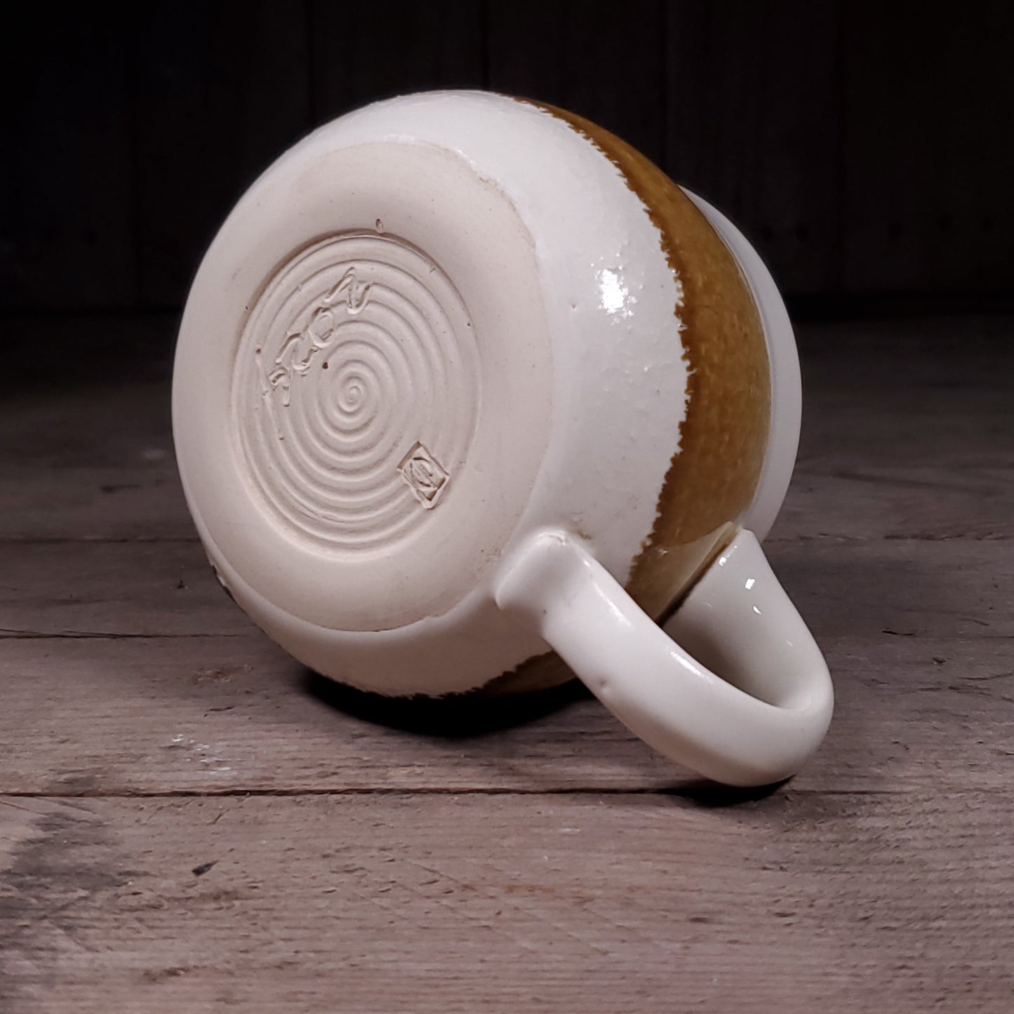 This mug, born from my constant experimentation, was textured using a knockdown sponge from a hardware store. The subtle yet captivating result highlights the glaze flowing around the texture's high points, creating an almost fluid, dynamic appearance.